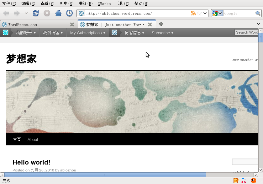 在注册了wordpress.com的帐号,并连接到msn的帐号后,进行导入。导入完毕后,如下: