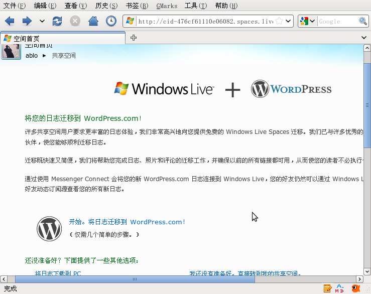 今天访问,发现live space页面给出提示,可以导入到wordpress.com或者下载到本地。我选择导入到wordpress.com.