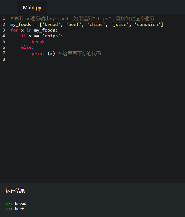 break可以用来终止当前的循环语句,即使循环没结束,执行了break语句这个循环就终止了,直接跳出整个循环。