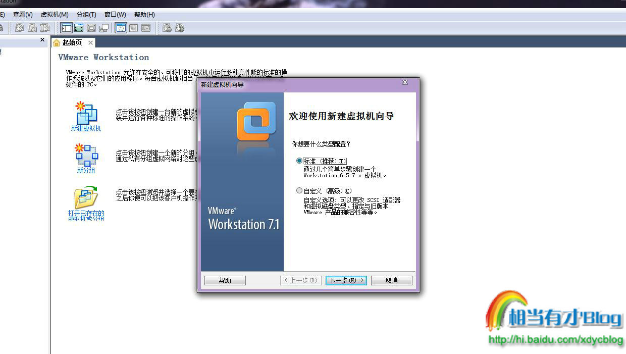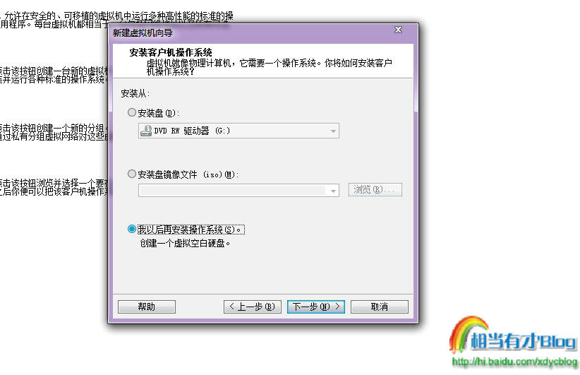 选择新建虚拟机,标准模式下单击下一步,选择第三项创建空白磁盘