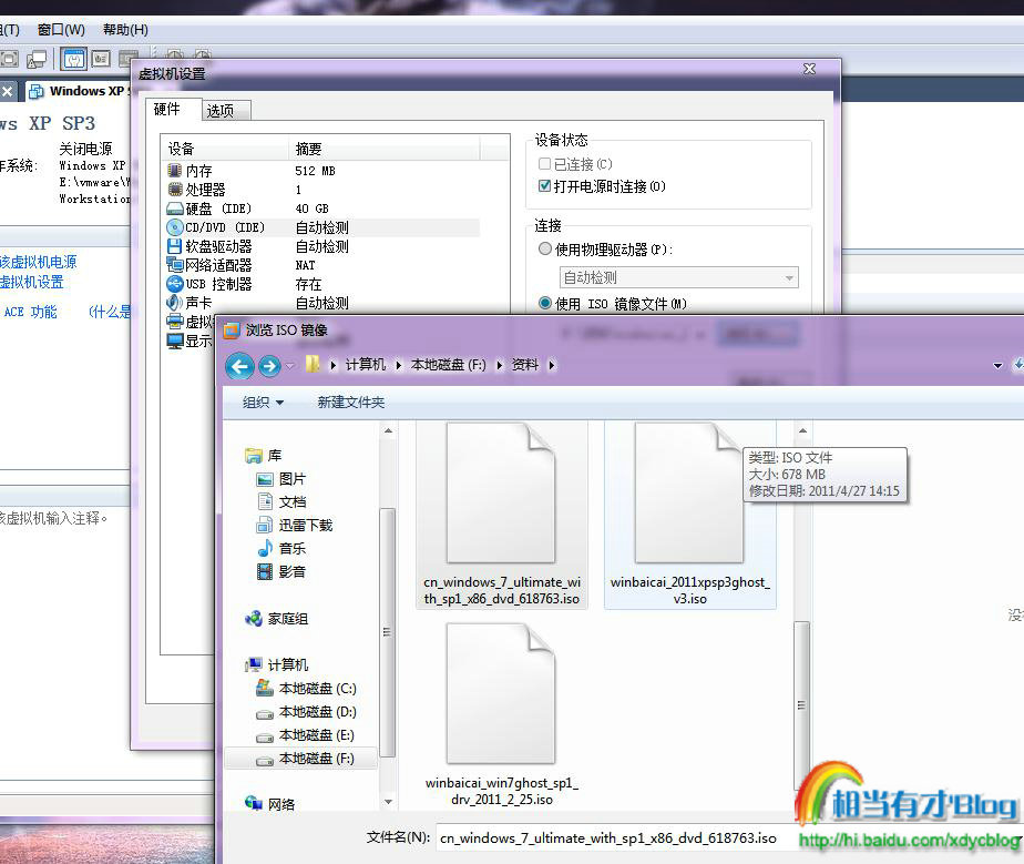 在这个界面下点击编辑虚拟机设置,选中cd/dvd哪一行,在右边选中使用iso镜像文件,选择下载好的xp镜像文件路径就ok了!,还是见图.