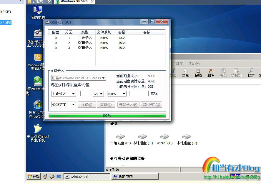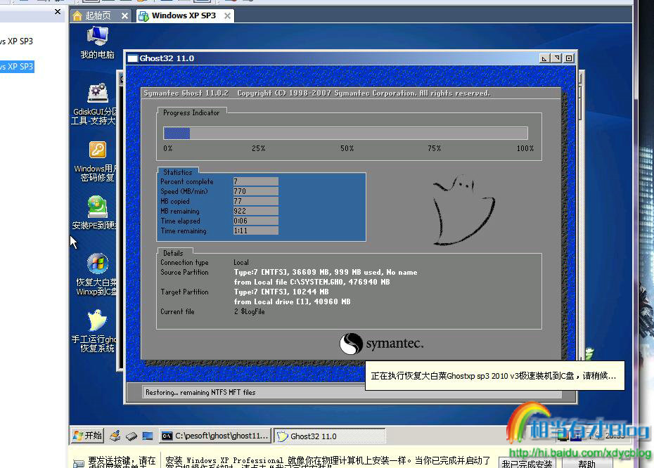 之后就简单多了,先对硬盘分区,然后选择恢复iso到c盘,依然看图
