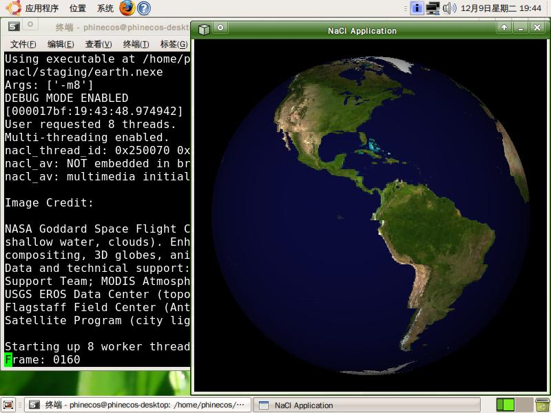 结果如图所示,标题“NaCl Application”表明你是在一个特定的进程中运行一个Native Client模块: