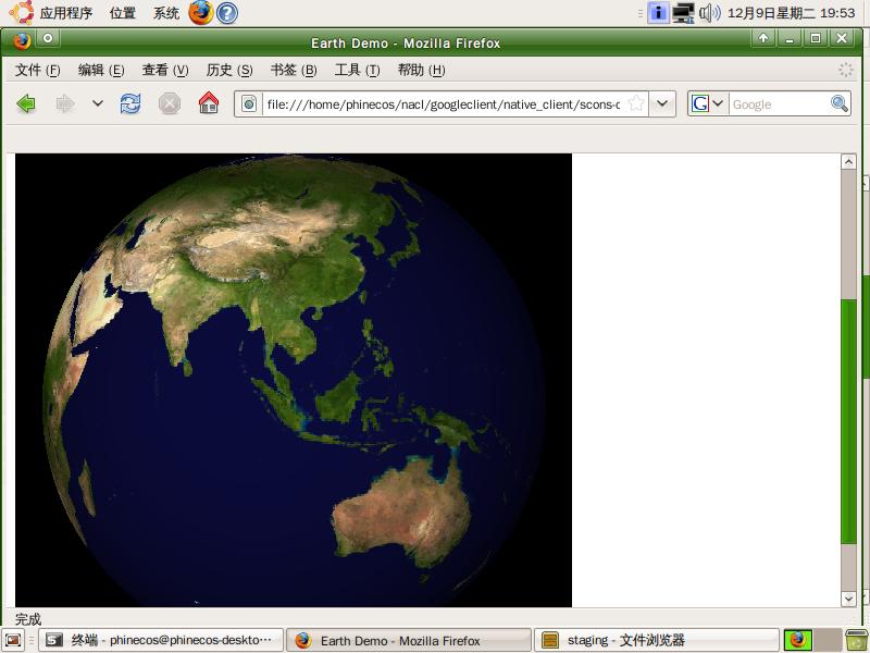 现在我们切换到浏览器中来运行Native Client模块,我们必须安装Native Client插件,然后把引用这些Native Client模块的页面给加载到浏览器中。