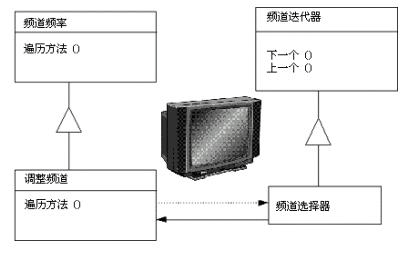 迭代器提供一种方法顺序访问一个集合对象中各个元素,而又不需要暴露该对象的内部表示。在早期的电视机中,一个拨盘用来改变频道。当改变频道时,需要手工转动拨盘移过每一个频道,而不论这个频道是否有信号。现在的电视机,使用[后一个]和[前一个]按钮。当按下[后一个]按钮时,将切换到下一个预置的频道。想象一下在陌生的城市中的旅店中看电视。当改变频道时,重要的不是几频道,而是节目内容。如果对一个频道的节目不感兴趣,那么可以换下一个频道,而不需要知道它是几频道。