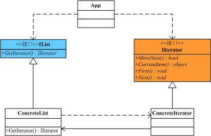 抽象的迭代器,它是用来访问聚集的类,封装了一些方法,用来把聚集中的数据按顺序读取出来。通常会有MoveNext()、CurrentItem()、Fisrt()、Next()等几个方法让子类去实现。