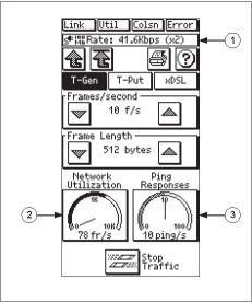 测试网络设备的模式、帧大小或网络速率的对应关系,用于对调制解调器、FRADS、集线器、交换机或路由器等设备的优化与设置的评估