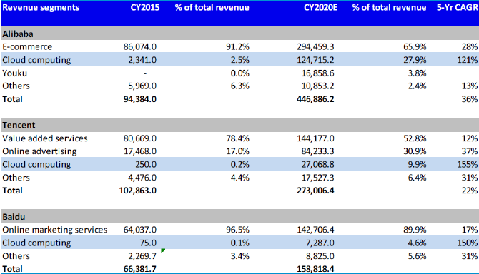 根据德意志银行的数据分析,阿里云计算的体量是腾讯的10倍,百度的30倍。 “这是半年前的报告,从双11这次大促的成绩看,BAT之间云计算的差距有可能进一步拉大。而且这种差距已经从之前的珠穆朗玛峰与第二高峰乔戈里峰的差距,拉大到珠穆朗玛峰跟长白山的距离了。”知乎网友调侃。