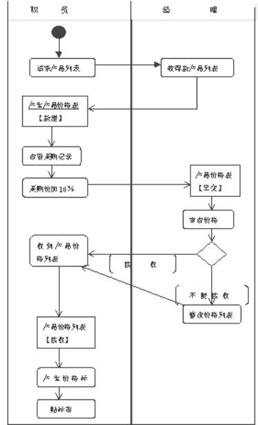 对商业活动在使用 UML 建模之前,我们往往对这一系列活动一步一步地用文字将所用的用例列举出来,即表达出商业活动的功能。例如对一个新产品的定价问题的描述,可以用如下表示法: