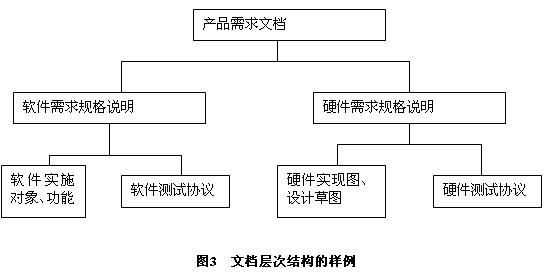 图 3 显示了一个项目文档的简单层次。在这个例子中,产品需求文档是所有需求的"源文档"。在其他例子中,源文档可能是用户需要文档、系统规格说明等。