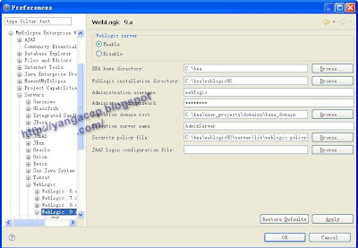 在MyEclipse中部署Weblogic9.2中文版j2ee服务器