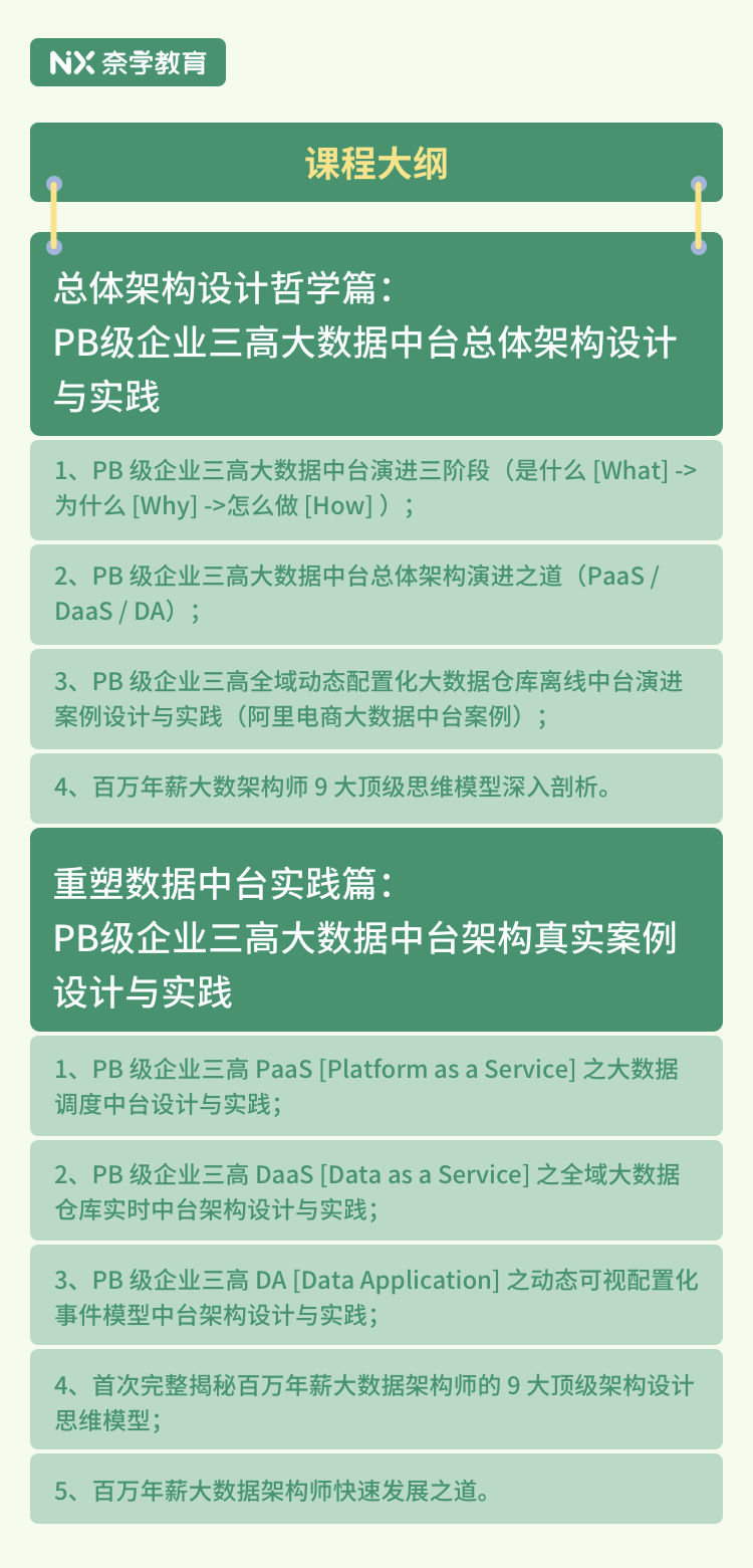 总之,通过从PB级企业三高大数据中台架构体系设计核心技术点,到企业海量大数据中台架构设计线,再到PB级企业真实业务应用面的深度剖析,使得同学们全方面立体掌握三高大数据中台架构设计与实践,同时拥有百万年薪架构师的顶级思维模型。