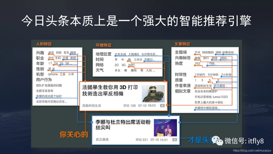 今日头条会通过用户使用的手机,操作系统,版本等“识别”。另外,比如用户通过社交帐号登录,如新浪微博,头条会对其好友,粉丝,微博内容及转发、评论等维度进行对用户做初步“画像”。