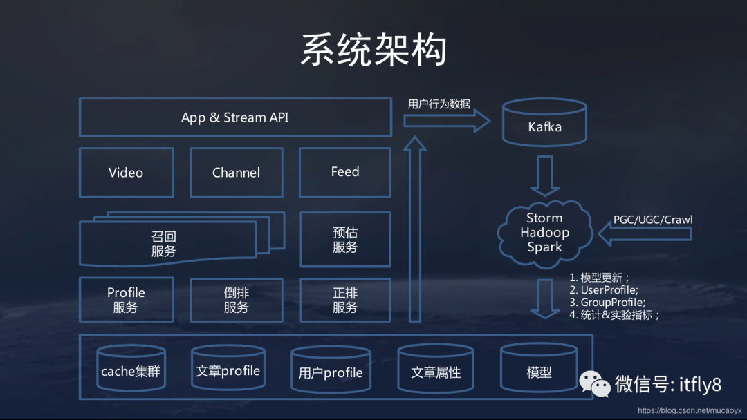 产生的用户模型数据和大部分架构一样,保存在MySQL/MongoDB(读写分离)以及Memcache/Redis中。
