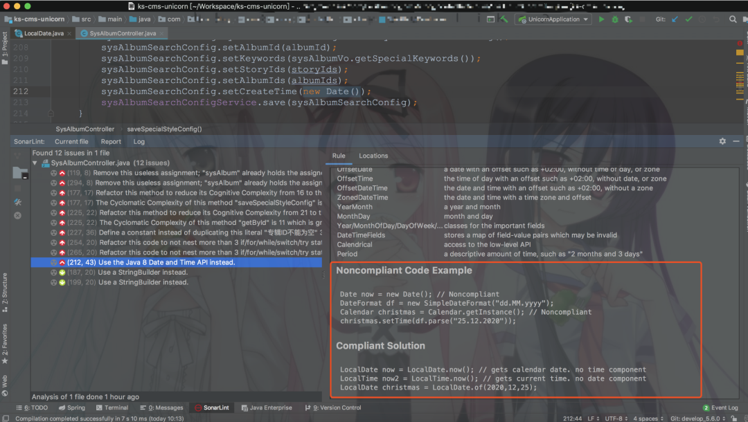比如,对于日期类型尽量用LocalDate、LocalTime、LocalDateTime,还有重复代码、潜在的空指针异常、循环嵌套等等问题