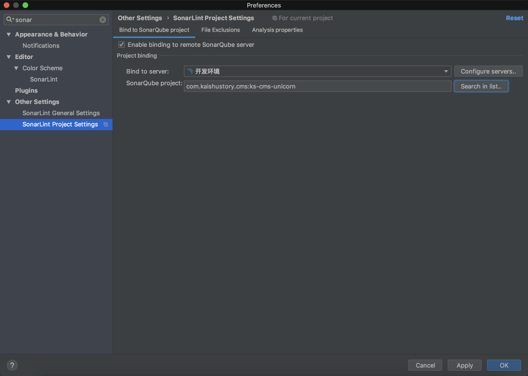如果需要同步自定义的规则时,可以绑定到SonarQube