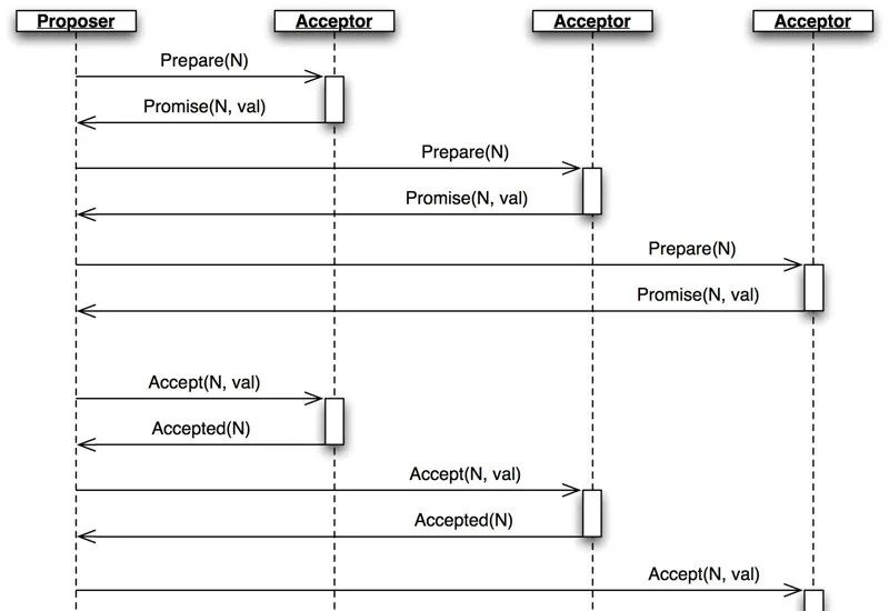 Acceptor收到M编号的请求时,若M大于该Acceptor已经响应的所有Prepare请求的编号中的最大编号N,那么他就将N反馈给Proposer,同时承诺不会再批准任何编号小于M的提案