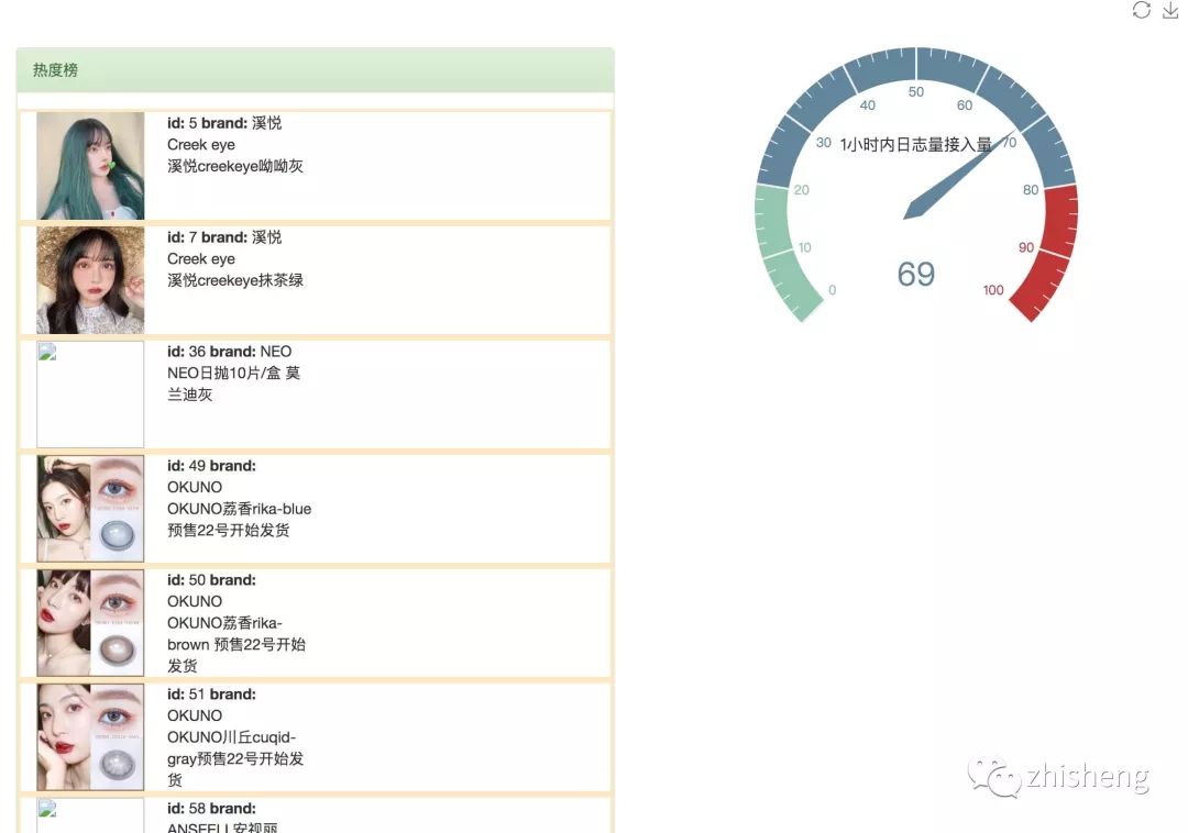 在后台上显示推荐系统的实时数据,数据来自其他Flink计算模块的结果.目前包含热度榜和1小时日志接入量两个指标.