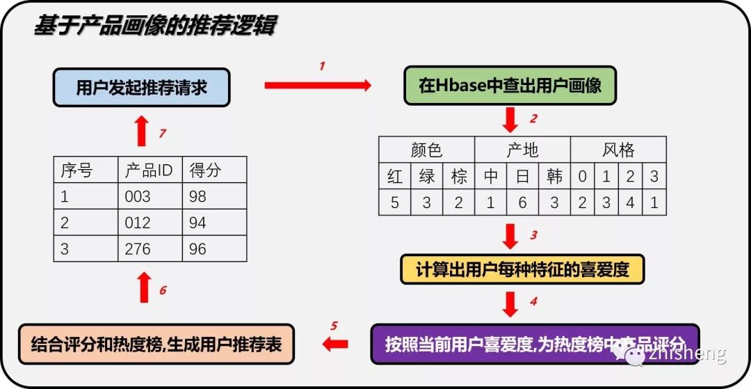 根据产品用户表(Hbase) 去计算公式得到相似度评分:
