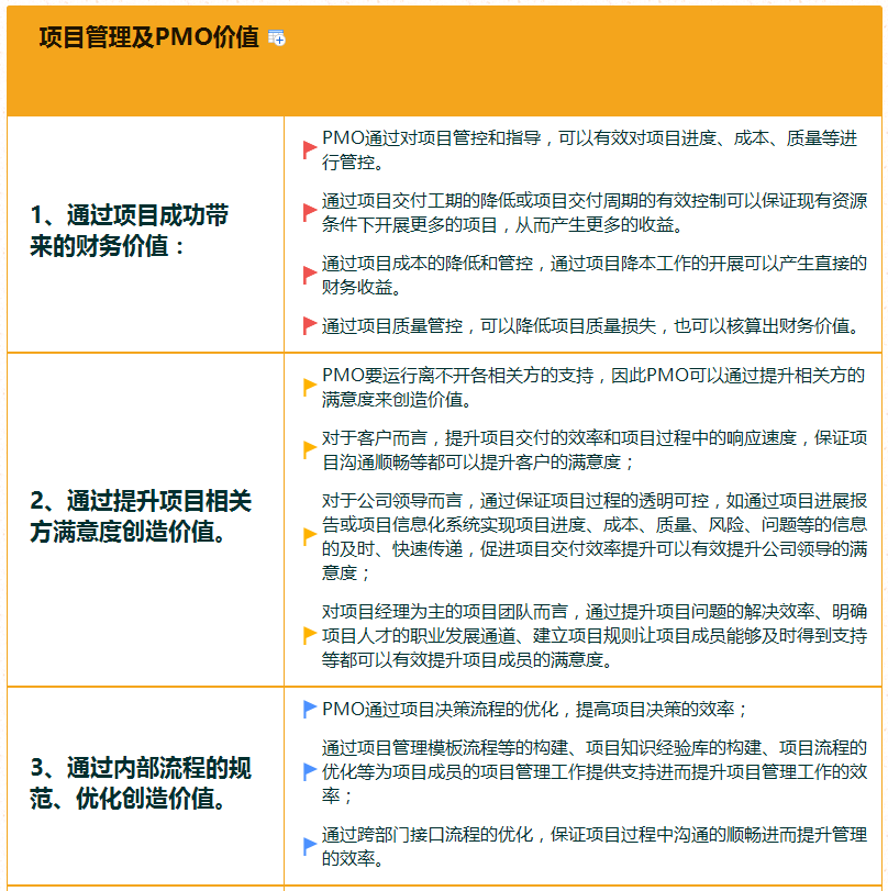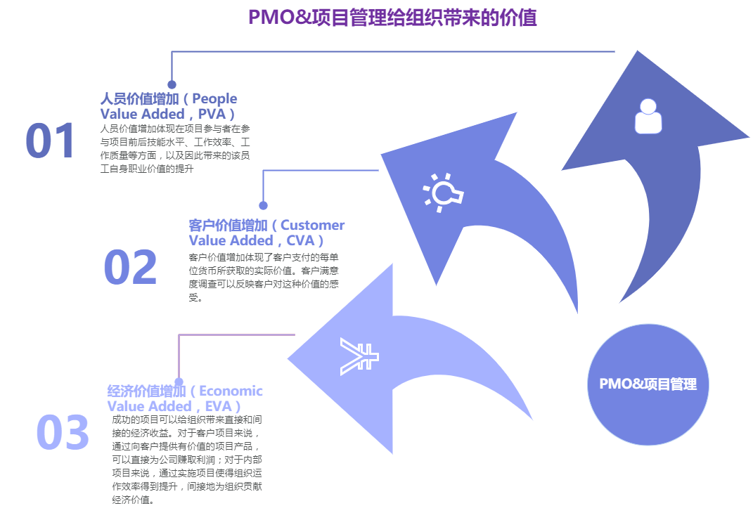 项目管理及PMO给组织带来的收益可以总结为以下3个方面: