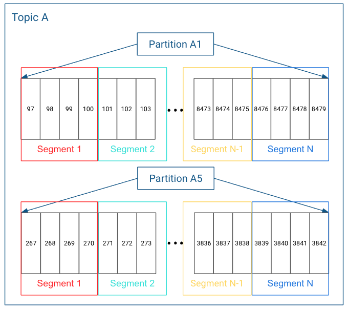 topic的一个partition是一个逻辑上的数组,由多个segment组成,如下图所示: