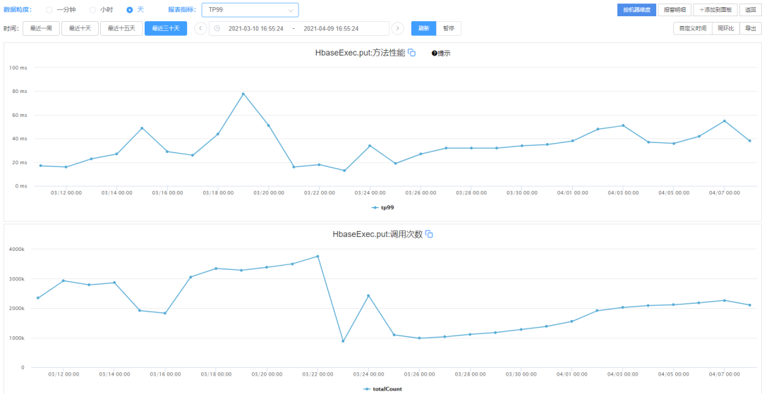 对HBase进行批量查询时,将批量数据控制到100以内,超过后性能会下降非常明显。