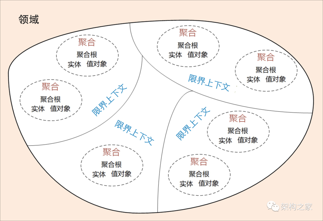DDD也是如此, 当我们面对桃树这种复杂的业务的时候,先根据固有的认识分成多个器官(领域),然后再在每一个领域中根据某些维度(这儿是功能)分为多个组织(聚合), 而每一个组织中由很多细胞(实体)组成,这就是一种战略, 有哪些好处呢 ?可以确保我们讨论的边界, 也就是讨论的东西是一个领域一个维度的, 对于桃树来说, 桃子 、桃花、桃叶、树干都是不同的领域, 划分不同领域的就是边界, 我们这儿叫领域边界, 当我们确定好这些领域之后, 就可以确保我们讨论的是同一个领域部分的东西,这样的好处就是我们可以规定好一些概念, 或者说术语, 以后大家讨论的时候就尽可能少的信息丢失。