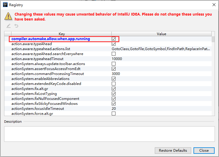 2、在IDEA使用快捷键ctrl + shift +alt + /,双击Registry,勾选:
