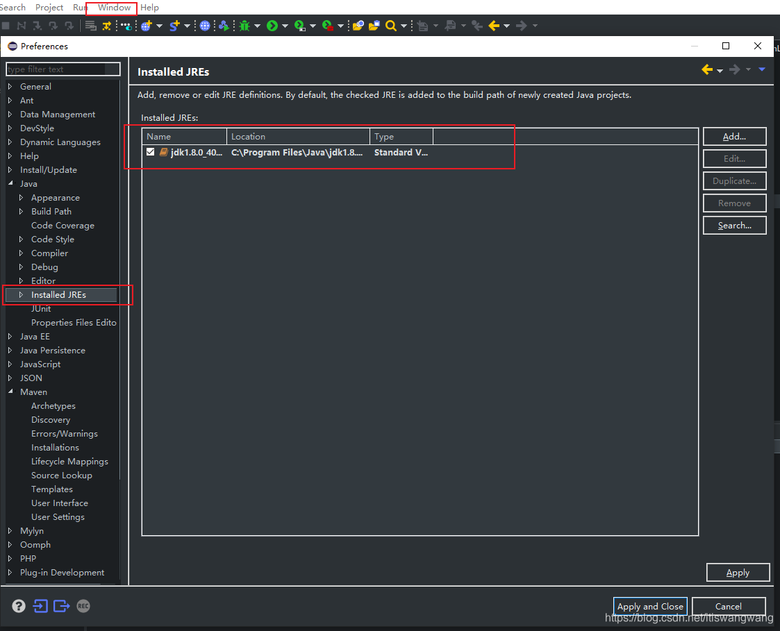 1. window-preferences-java-installed jres,检查对应版本jdk是否添加,并勾选