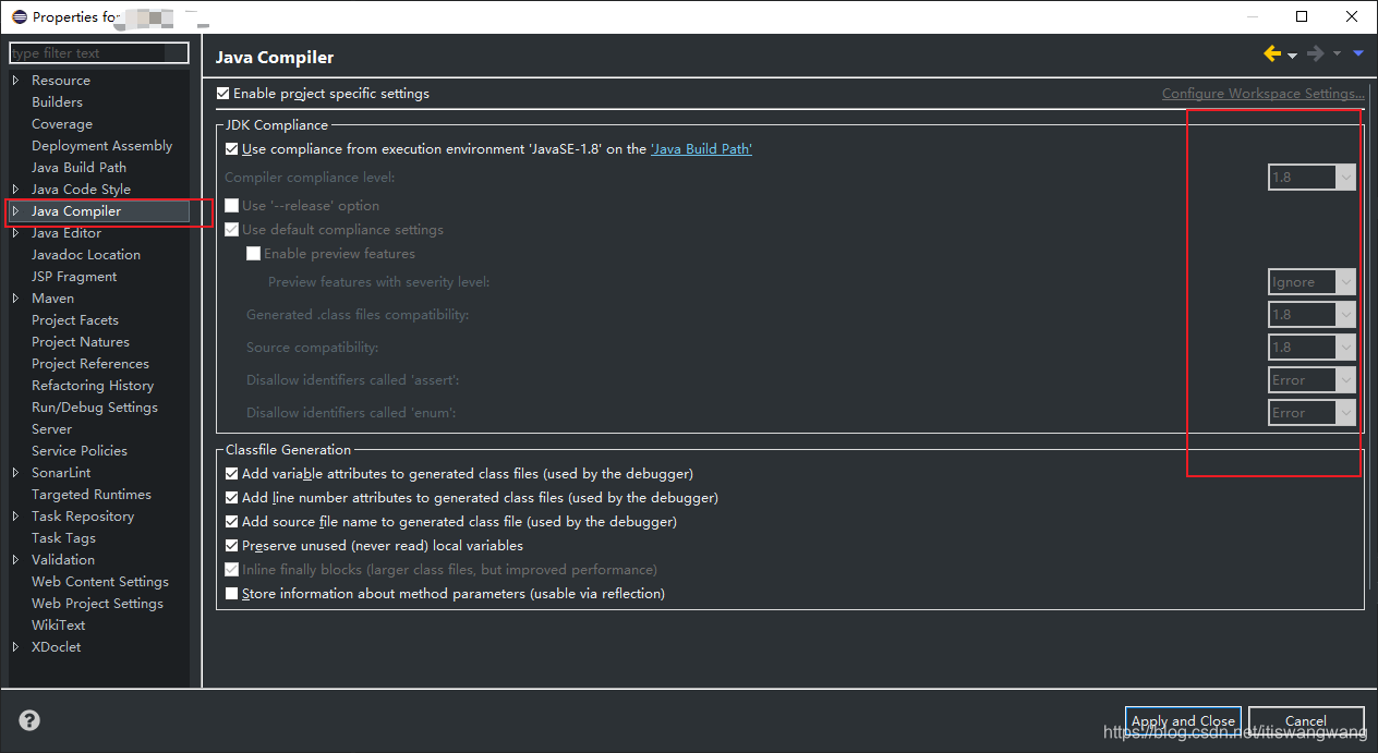 4. 项目根目录右键-properties-Java Compiler,检查java 编译器是否配置为对应版本jdk