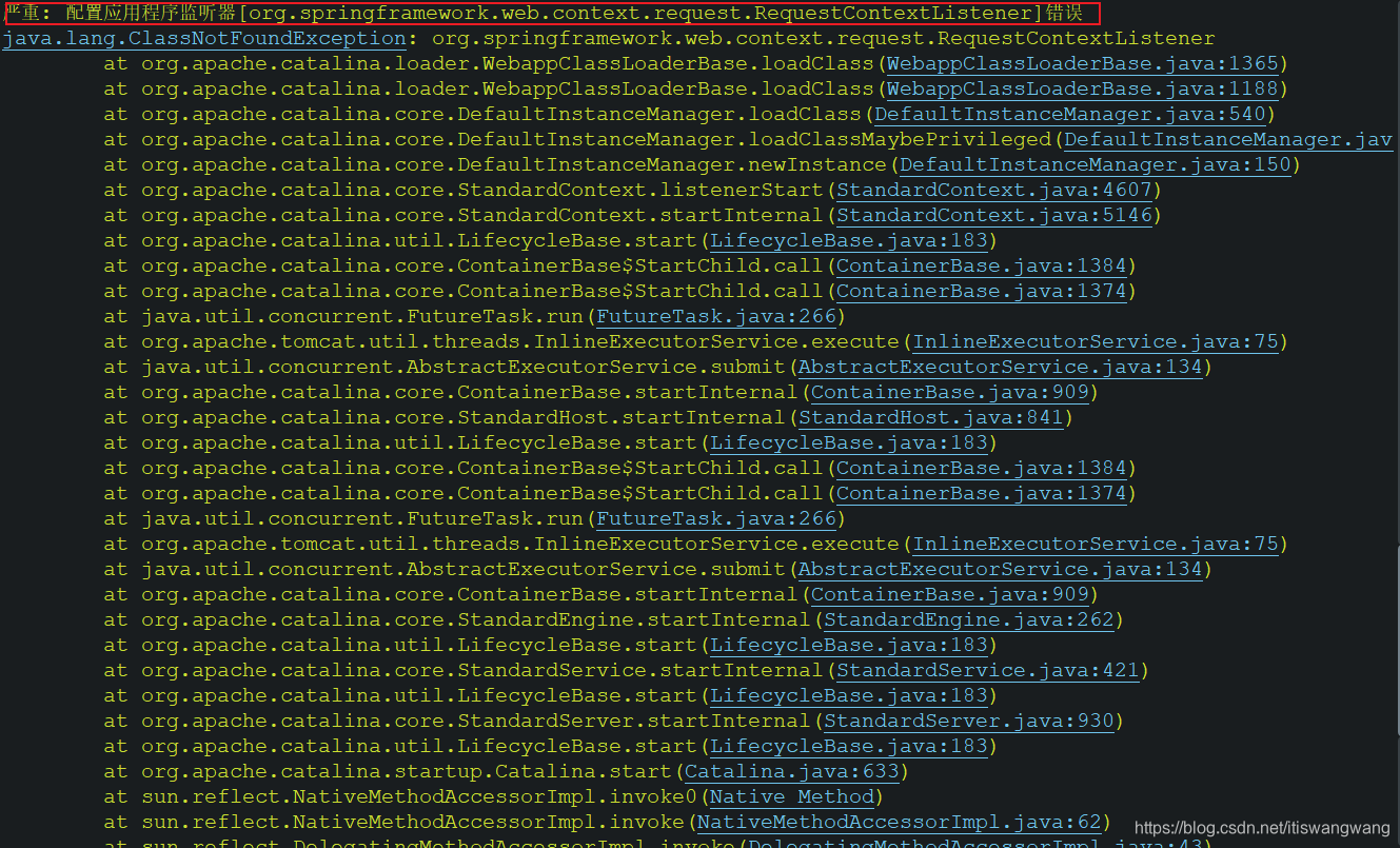 严重: 配置应用程序监听器[org.springframework.web.context.request.RequestContextListener]错误