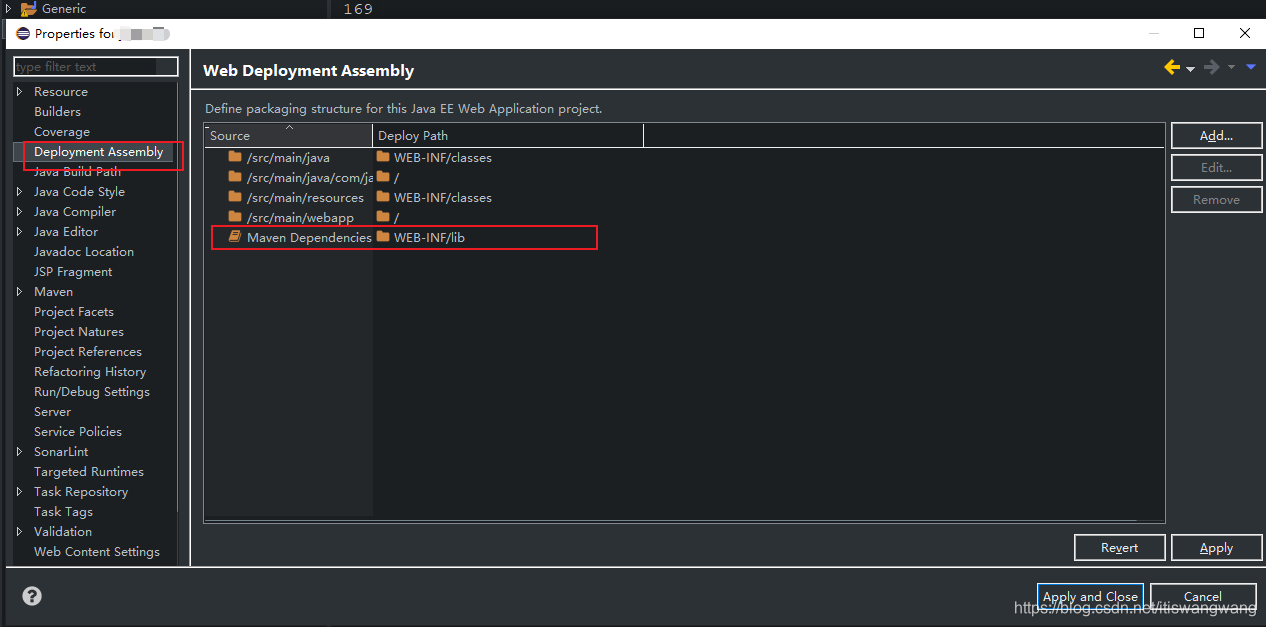 2.项目根目录右键-properties-deployment assembly,检查maven dependencies是否添加