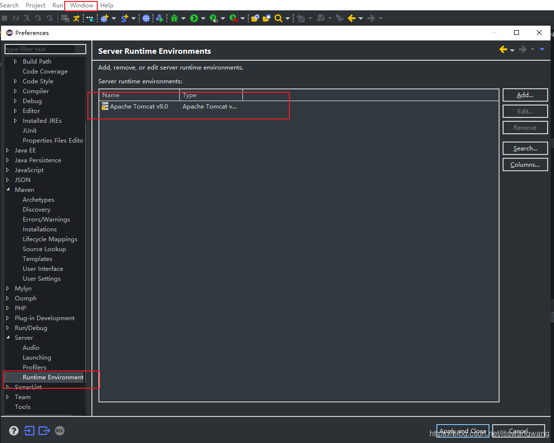 2. window-preferences-server-runtime environment,检查对应版本tomcat是否添加