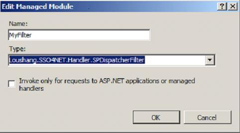这种方案的好处是,不需要修改既有的应用程序代码,就能够将其集成到单点登录系统中。也就是只要把认证的Dll复制到应用执行目录下,然后配置HttpModule和HttpHandler即可。