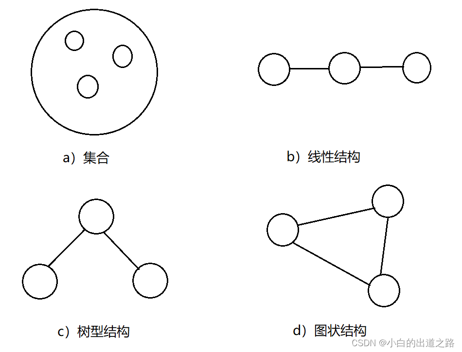 | 集合 | 线性结构 | 树形结构 | 图状结构 |