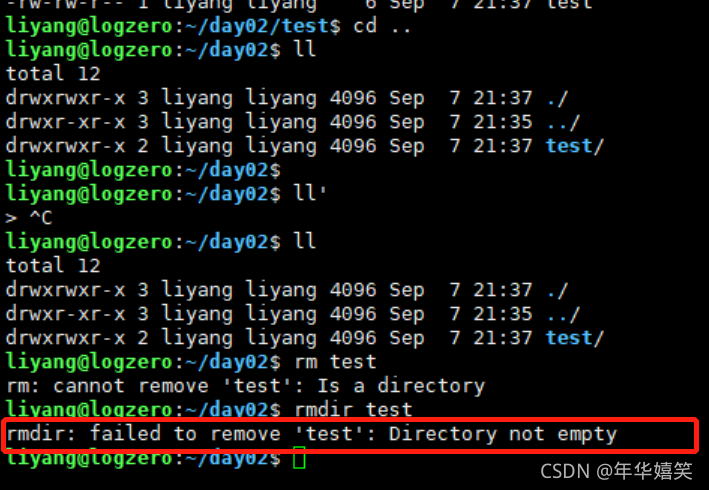 若要删除文件夹及 目录下的所有文件,需要添加-r参数。