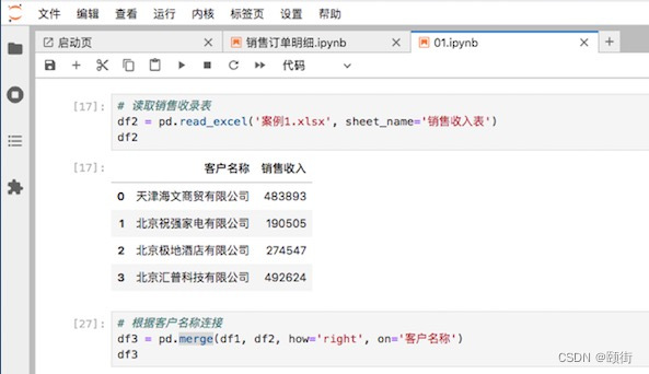 1、pandas读取2个表里面的数据