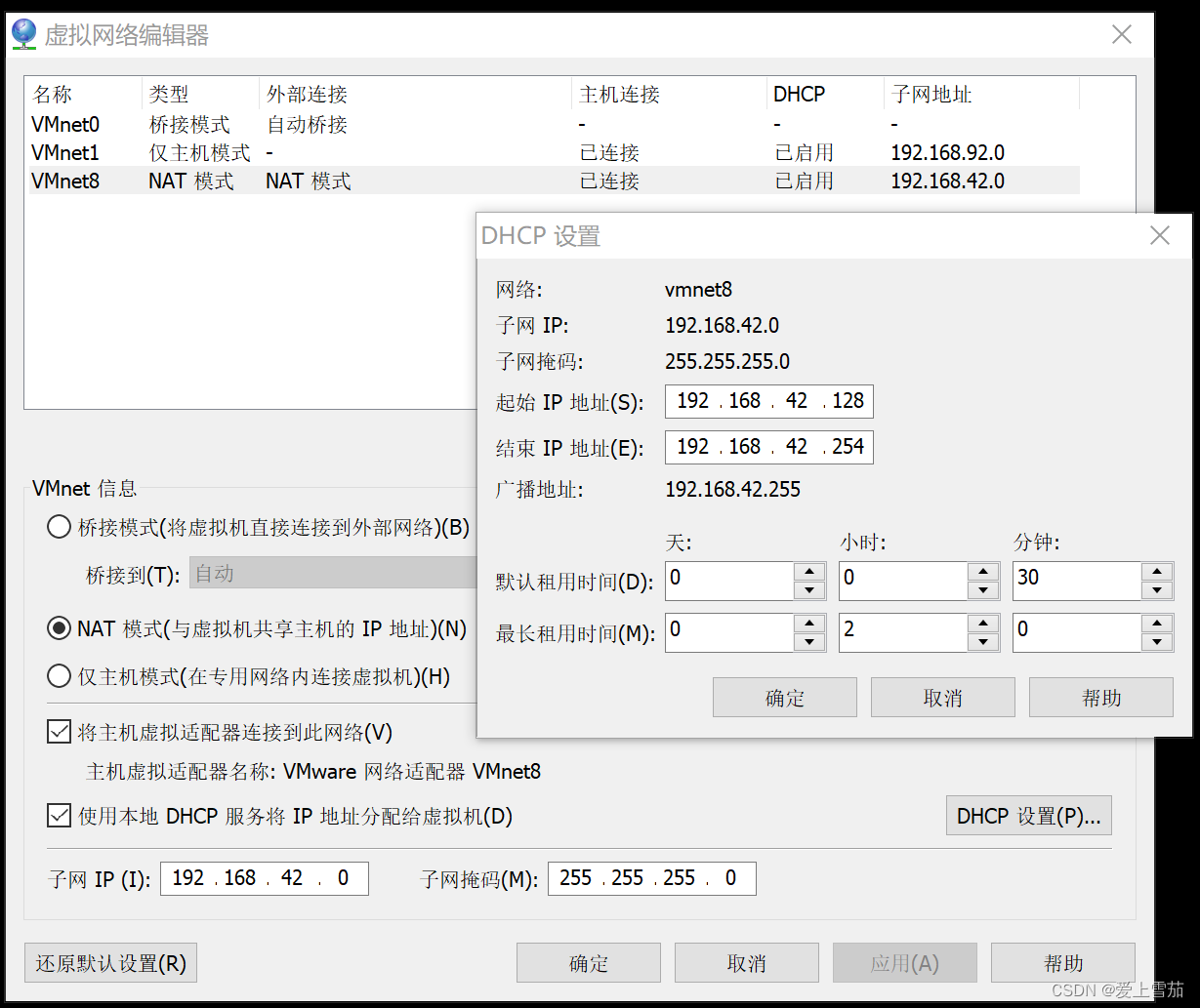 1、在虚拟机中配置网络,改ONBOOT=yes后默认直接DHCP自动获取ip,但是这种方法会导致ip改变。这个时候,我们需要配置固定ip