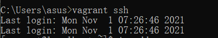 ssh连接本地虚拟机:本机命令行输入 vagrant ssh