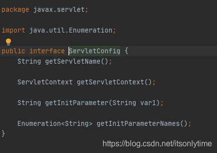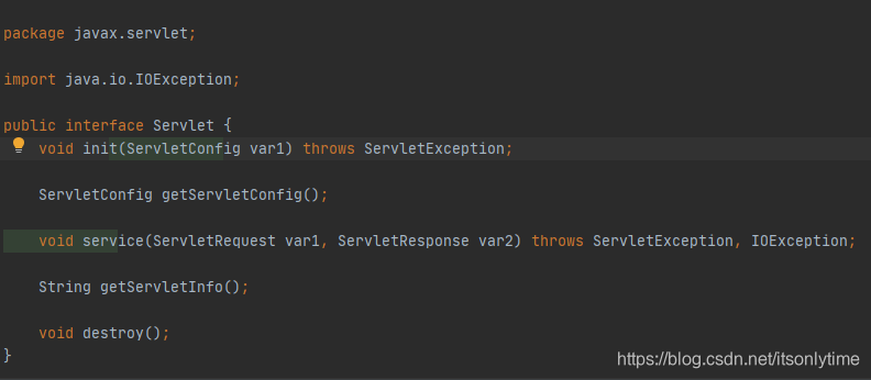 这节我们来看看 servlet 中比较重要的一些类,下图是 servlet 接口源码: