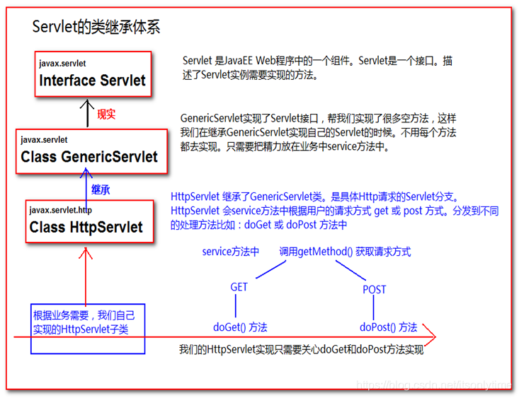 项目中一般使用这种方式来实现Servlet。(可能是因为接口方式需要重写全部的方法吧)。