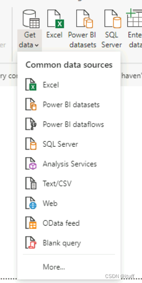 9、打开“Power BI Desktop“,选择”Get data“-“More”: