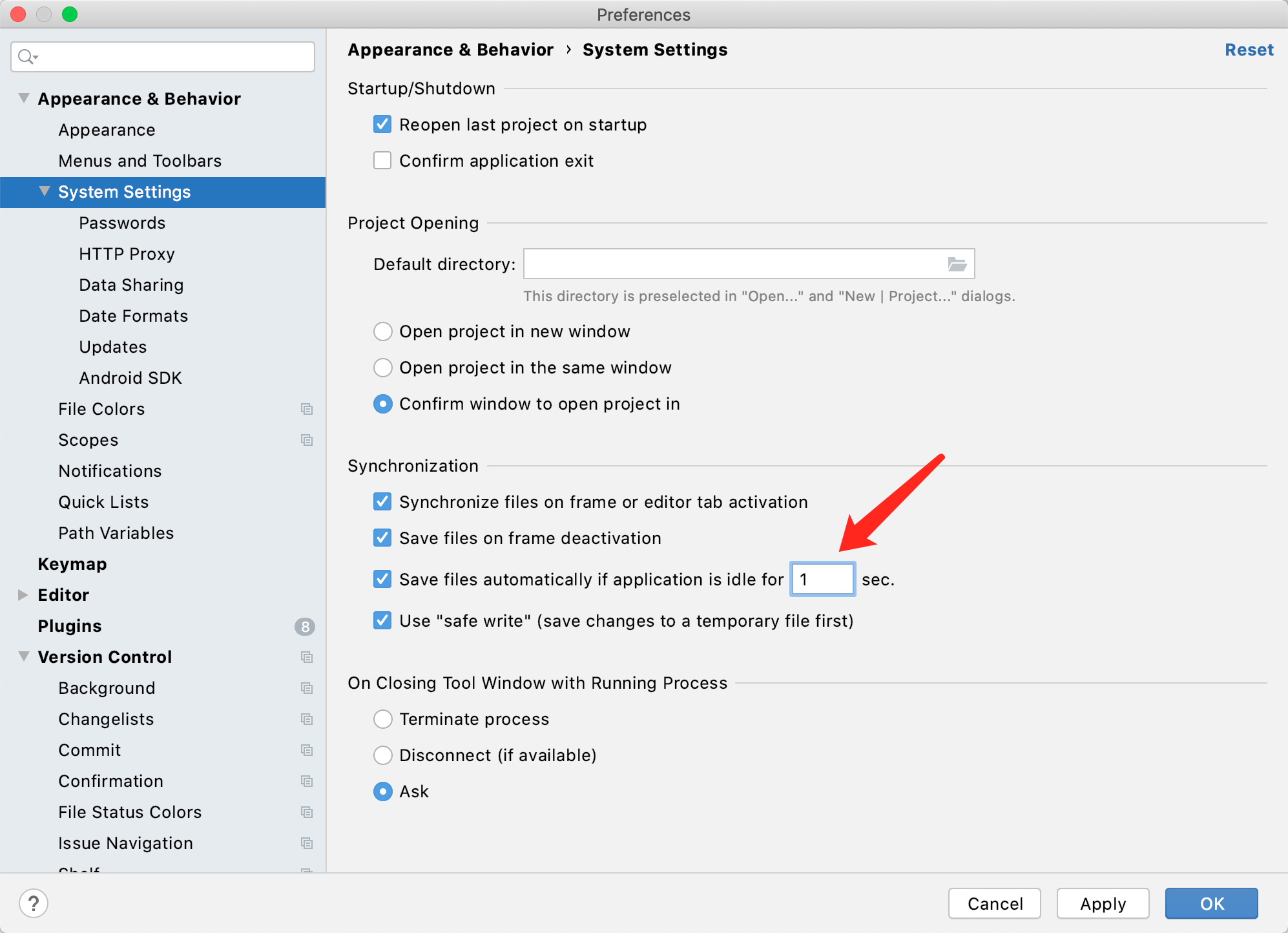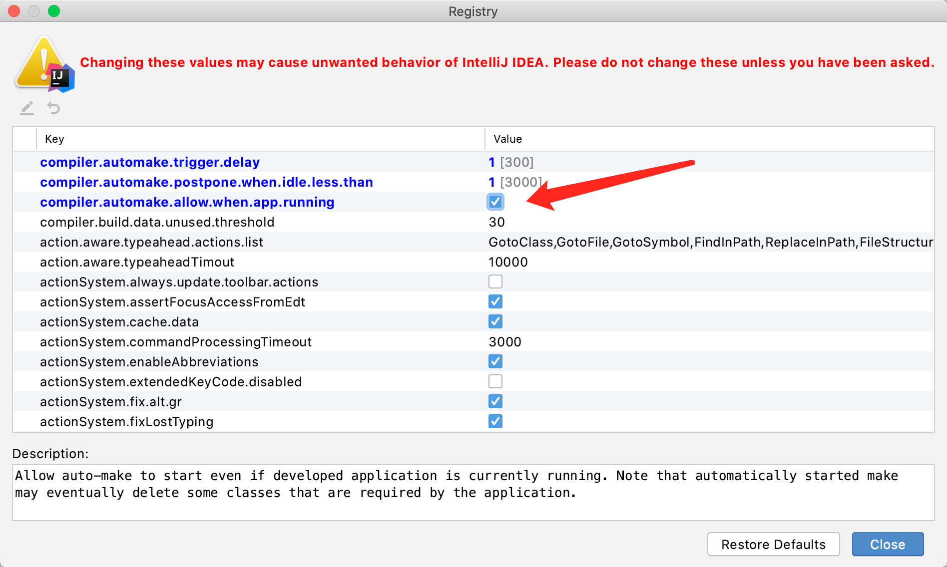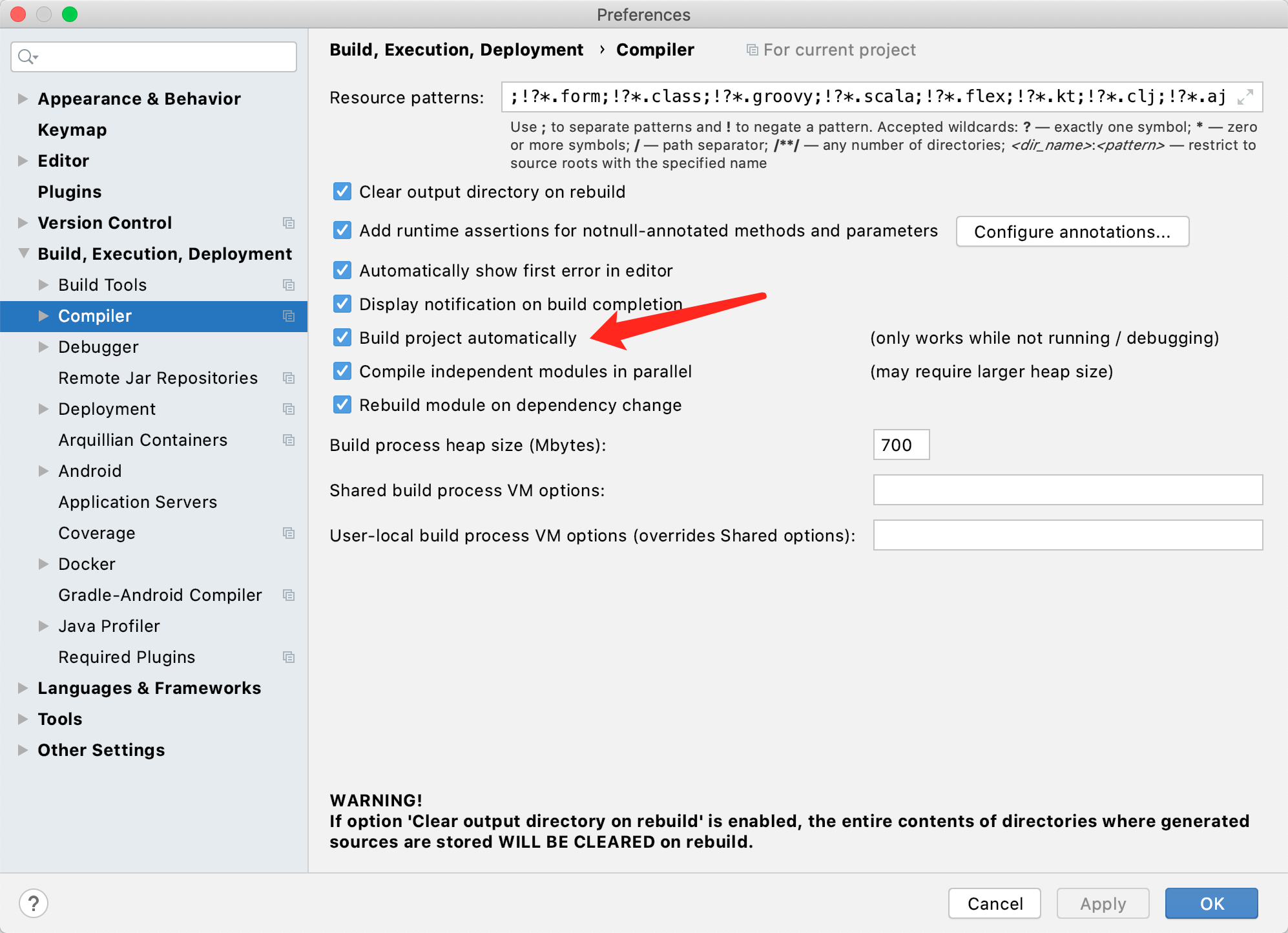 - 设置运行时自动编译(快捷键macos:shift+option+command+/,windows:shift+control+alt+/,其它选项按需调整)