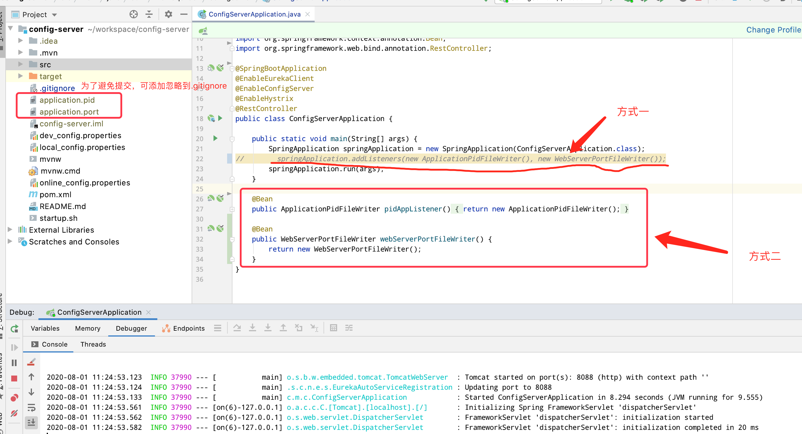 如图 生成的文件名和目录可以硬编码、配置文件或者通过启动参数指定,具体见文档或javadoc。 参考 https://docs.spring.io/spring-boot/docs/current/reference/htmlsingle/#production-ready-process-monitoring