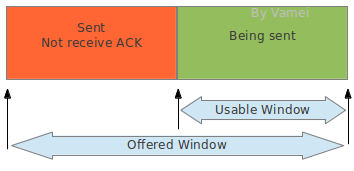 发送方滑窗可以分为下面两个部分。offered window 为整个滑窗的大小。