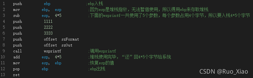 3、在 ebp 出栈前,需要把 esp 恢复到只有 ebp 在栈中时的值。