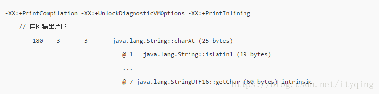 前面说到的几个方面,只是Java底层对字符串各种优化的一角,在运行时,字符串的一些基础操作会直接利用JVM内部的Intrinsic 机制,往往运行的就是特殊优化的本地代码,而根本就不是Java代码生成的字节码。Intrinsic 可以简单理解为,是一种利用native方式hard-coded的逻辑,算是一种特别的内联,很多优化还是需要直接使用特定的CPU指令,具体可以看相关源码,搜索"string" 以查找相关Intrinsic 定义。当然,你也可以在启动实验应用时,使用下面参数,了解intrinsic发生的状态。