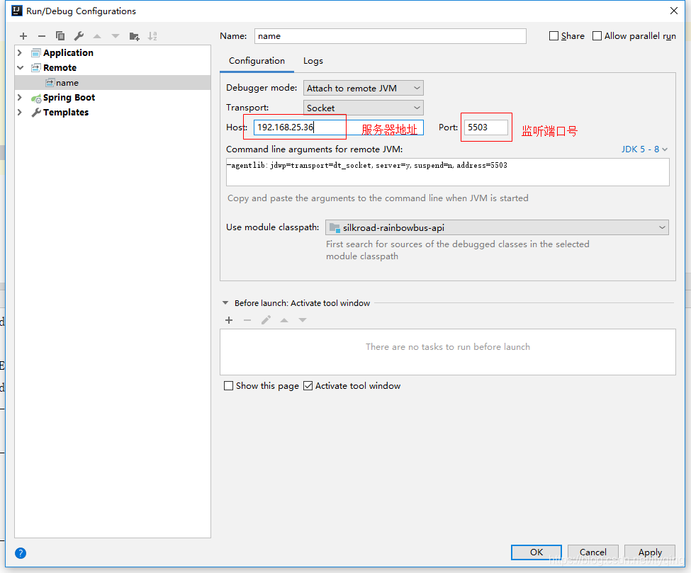 java -agentlib:jdwp=transport=dt_socket,server=y,suspend=n,address=5503 -jar xxxx.jar