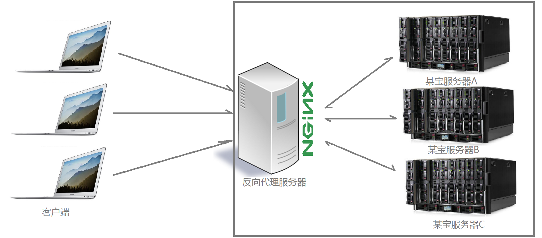 那么反向代理具体是通过什么样的方式实现的分布式的集群操作呢,我们先看一个示意图: