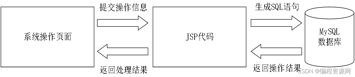 本系统采用的是B/S架构,在这种架构下,系统的操作页面在网络上去显示,操作页面提交操作信息给到代码逻辑三层结构架构如图2.1所示: